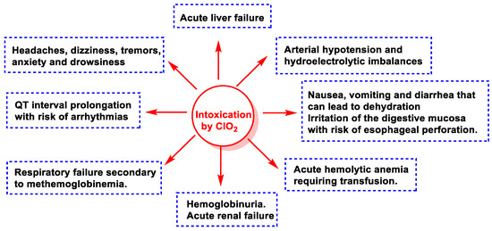 - Romanovsky, A.; Djogovic, D.; Chin, D. A Case of Sodium Chlorite Toxicity Managed with Concurrent Renal Replacement Therapy and Red Cell Exchange. J. Med. Toxicol. 2012, 9, 67–70. [Google Scholar] [CrossRef]
