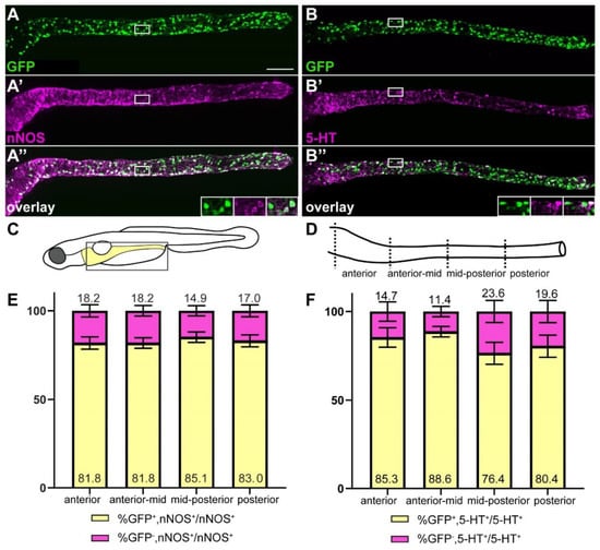 3.3. A Small Proportion of ENS Neurons Is GFP-Negative at Larval and Adult Stages