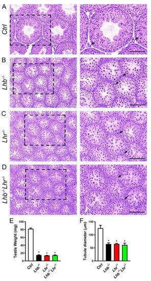- Yuan, F.P.; Lin, D.X.; Rao, C.V.; Lei, Z.M. Cryptorchidism in LhrKO animals and the effect of testosterone-replacement therapy. Hum. Reprod. 2006, 21, 936–942. [Google Scholar] [CrossRef][Green Version]