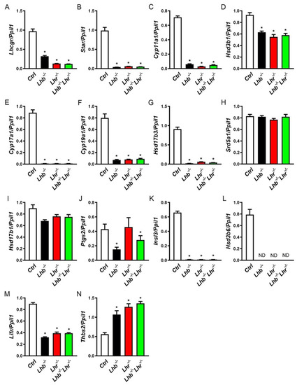 - Zhang, F.P.; Pakarainen, T.; Zhu, F.; Poutanen, M.; Huhtaniemi, I. Molecular characterization of postnatal development of testicular steroidogenesis in luteinizing hormone receptor knockout mice. Endocrinology 2004, 145, 1453–1463. [Google Scholar] [CrossRef] [PubMed]
