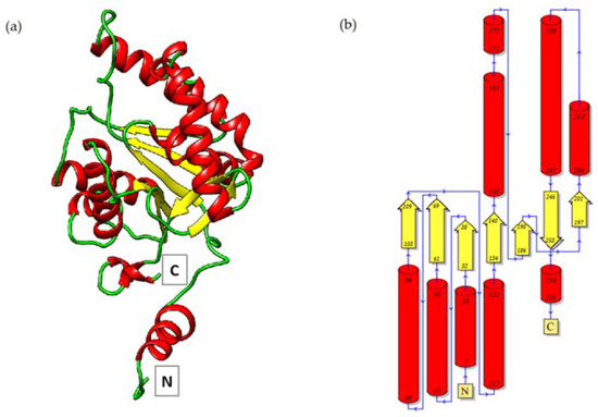 Ribbon diagram (a) and topology of the secondary structure (b) of a Pch-Dac subunit. The N- and C-termini are indicated.