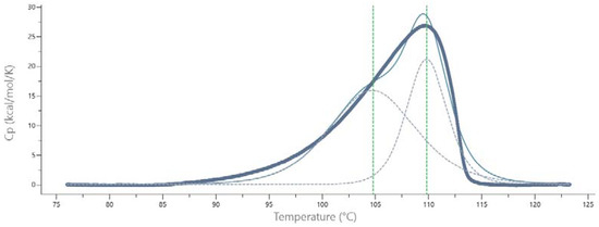 Reversibility tests, consisting of cooling the unfolded protein, showed that denaturing of Pch-Dac was irreversible under the experimental conditions (1.8 mg/mL, Buffer A: 20 mM TRIS pH 7.4, 200 mM NaCl, scan rate 60 °C/h in both directions, in the range 40–130 °C).