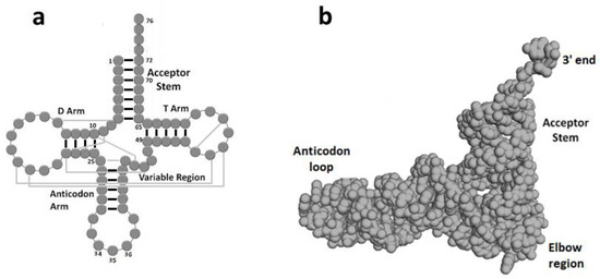 - Schimmel, P.; Ribas de Pouplana, L. Transfer RNA: From minihelix to genetic code. Cell 1995, 81, 983–986. [Google Scholar] [CrossRef]