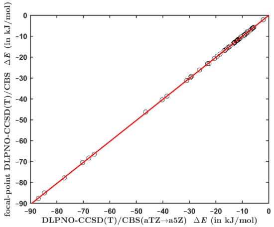 - Chen, J.-L.; Sun, T.; Wang, Y.-B.; Wang, W. Toward a less costly but accurate calculation of the CCSD(T)/CBS noncovalent interaction energy. J. Comput. Chem. 2020, 41, 1252–1260. [Google Scholar] [CrossRef]
