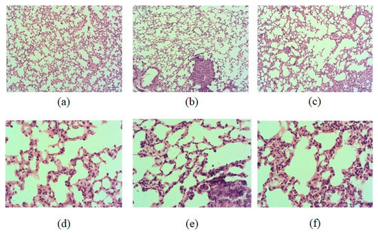 Lung preparations were fixed in 10% neutral buffered formalin, passed through increasing concentrations of alcohol to xylene and embedded in paraffin wax according to standard methods, then sectioned into 5 μm-thick slices, and stained with hematoxylin and eosin [46].