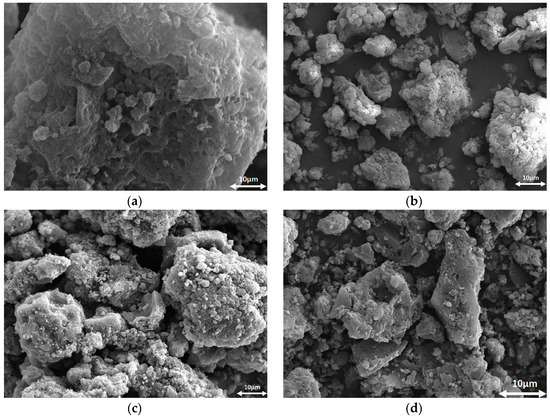 The SEM images of the obtained adsorbents are presented in Figure 2. The brighter fragments observed on the biocarbons may be due to the presence of ash.
