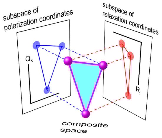 Due to the linearity of the medium response, the splitting into the relaxation components in Equation (5) is expected to be valid, not only for the energy-gap coordinate (the Zusman method []), but for any polarization coordinate as well. Keeping this in mind, we replace the single value with an R-dimensional vector as follows
