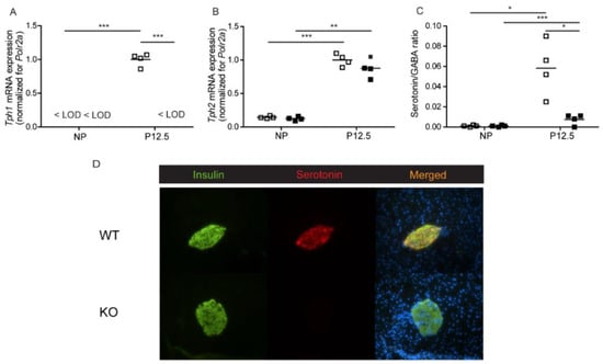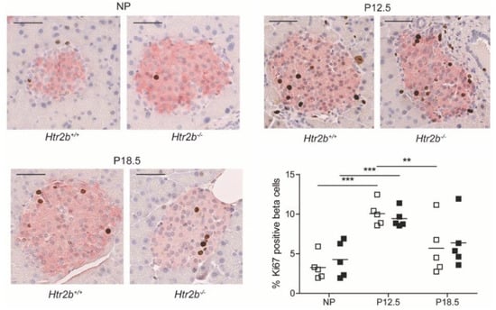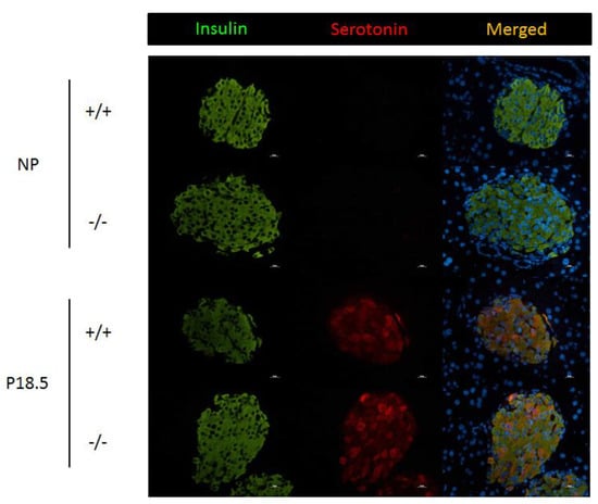 - Goyvaerts, L.; Schraenen, A.; Schuit, F. Serotonin competence of mouse beta cells during pregnancy. Diabetologia 2016, 59, 1356–1363. [Google Scholar] [CrossRef] [PubMed]