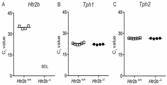 2.3.2. Expression of Htr2b mRNA, Tph1, and Tph2 mRNA in Htr2b Deficient Mice