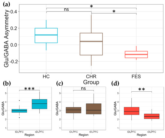 2.3. Glu/GABA Asymmetry in DLPFC across the Three Groups