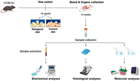 At the end of dietary treatment animals were euthanized, and blood and organs were properly collected according to Figure 7. Steps were taken to minimize any suffering. All experiments were performed in accordance with Italian law (D.L. 2010/63EU) and the study was approved by the Sapienza University’s Animal Research Ethics Committee (OPBA MedMol/2019.01), and by the Italian Ministry of Health (n. 130/2020-PR).