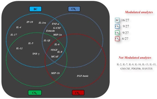 - Miceli, M.; Dell’Aversana, C.; Russo, R.; Rega, C.; Cupelli, L.; Ruvo, M.; Altucci, L.; Chambery, A. Secretome profiling of cytokines and growth factors reveals that neuro-glial differentiation is associated with the down-regulation of Chemokine Ligand 2 (MCP-1/CCL2) in amniotic fluid derived-mesenchymal progenitor cells. Proteomics 2016, 16, 674–688. [Google Scholar] [CrossRef]