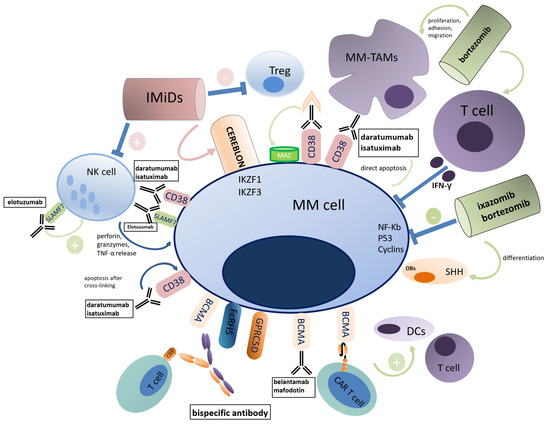 In general, all novel agents not only target malignant PCs, but also potentially polarize the immune system from an immunosuppressive state towards cytotoxic behavior (see Figure 3) [100].