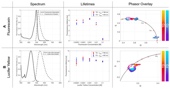 - Kristoffersen, A.S.; Erga, S.R.; Hamre, B.; Frette, Ø. Testing fluorescence lifetime standards using two-photon excitation and time-domain instrumentation: Rhodamine B, coumarin 6 and lucifer yellow. J. Fluoresc. 2014, 24, 1015–1024. [Google Scholar] [CrossRef] [PubMed]