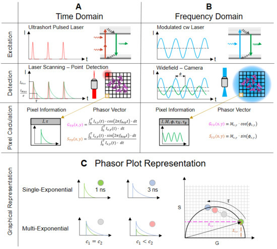 Kellerer, T.; Janusch, J.; Freymüller, C.; Rühm, A.; Sroka, R.; Hellerer, T. Comprehensive Investigation of Parameters Influencing Fluorescence Lifetime Imaging Microscopy in Frequency- and Time-Domain Illustrated by Phasor Plot Analysis. Int. J. Mol. Sci. 2022, 23, 15885. https://doi.org/10.3390/ijms232415885