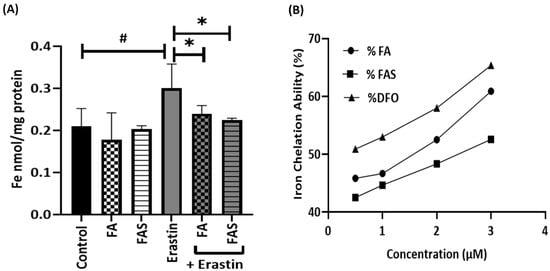 2.2. FA and FAS Suppress Iron Accumulation and Can Act as Iron Chelators