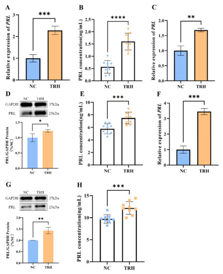 2.1. TRH Treatment Can Promote the Synthesis and Secretion of PRL in Rats