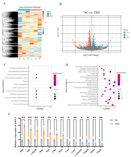 2.2. Analysis of Differentially Expressed Genes before and after TRH Treatment