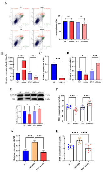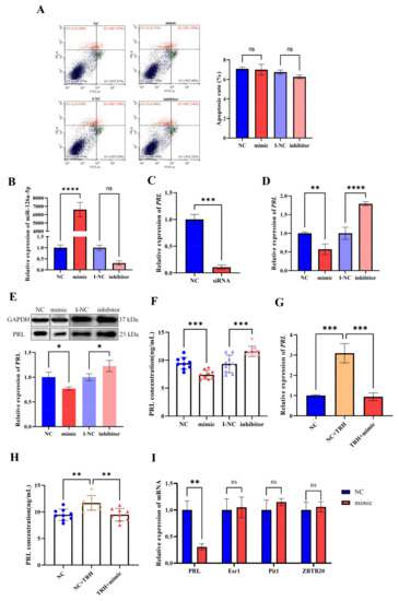 2.4. miR-126a-5p Regulates the Level of PRL mRNA Expression and PRL Secretion in GH3 Cells