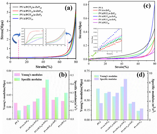2.4.2. Mechanical Properties of Multi-Directional PVA/PCF10/α-ZrP10-x Aerogels