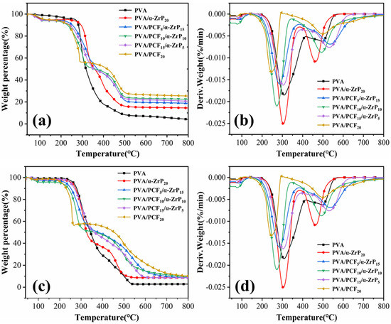 - Lu, H.; Wilkie, C.A.; Ding, M.; Song, L. Flammability performance of poly (vinyl alcohol) nano-composites with zirconium phosphate and layered silicates. Polym. Degrad. Stab. 2011, 96, 1219–1224. [Google Scholar] [CrossRef]