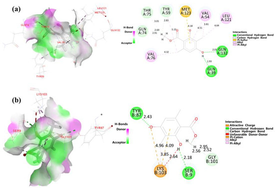 - Mun, S.K.; Kang, K.Y.; Jang, H.Y.; Hwang, Y.H.; Hong, S.G.; Kim, S.J.; Cho, H.W.; Chang, D.J.; Hur, J.S.; Yee, S.T. Atraric Acid Exhibits Anti-Inflammatory Effect in Lipopolysaccharide-Stimulated RAW264.7 Cells and Mouse Models. Int. J. Mol. Sci. 2020, 21, 7070. [Google Scholar] [CrossRef]