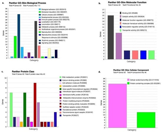 - Mi, H.; Muruganujan, A.; Ebert, D.; Huang, X.; Thomas, P.D. PANTHER version 14: More genomes, a new PANTHER GO-slim and improvements in enrichment analysis tools. Nucleic Acids Res. 2019, 47, D419–D426. [Google Scholar] [CrossRef] [PubMed]