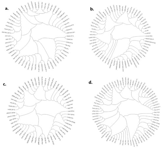 - Letunic, I.; Bork, P. Interactive Tree of Life (iTOL) v4: Recent updates and new developments. Nucleic Acids Res. 2019, 47, W256–W259. [Google Scholar] [CrossRef] [PubMed]