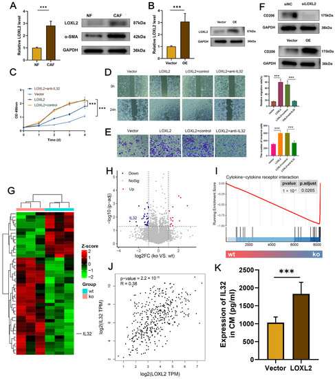 2.7. Upregulated LOXL2 in CAFs Promoted the Proliferation, Migration, and Metastasis of BCa Cells