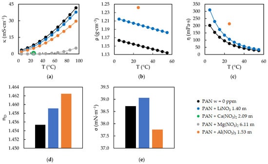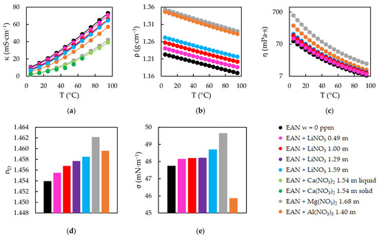 - Bouzón Capelo, S.; Méndez-Morales, T.; Carrete, J.; López Lago, E.; Vila, J.; Cabeza, O.; Rodríguez, J.R.; Turmine, M.; Varela, L.M. Effect of Temperature and Cationic Chain Length on the Physical Properties of Ammonium Nitrate-Based Protic Ionic Liquids. J. Phys. Chem. B 2012, 116, 11302–11312. [Google Scholar] [CrossRef] [PubMed]