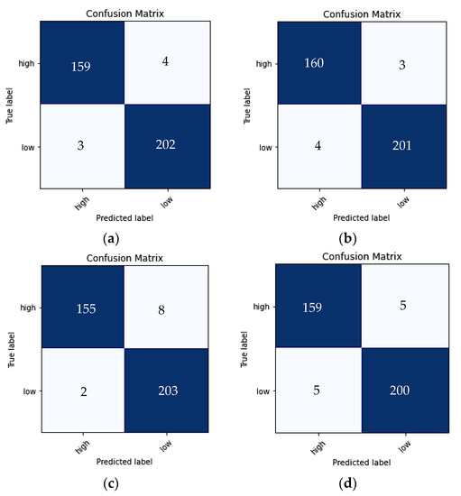 The accuracy results of the CNN models are presented below (Table 1). All models had relatively high accuracy, but the pre-trained Inception V3 model had a pronounced performance for the binary classification, with an accuracy rate of 99.35%. The result implies that the model accurately predicted 99.35% of the test input as being contained in either a high or low class. Both models from scratch performed comparatively well and had similar accuracy results. Model training and validation accuracy followed a desirable increase trend per epochs, as shown in Supplementary Table S1.