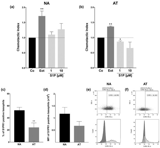 2.5. S1PR1 Protein Expression and Basophil Chemotaxis Differ in NA and AT Patients