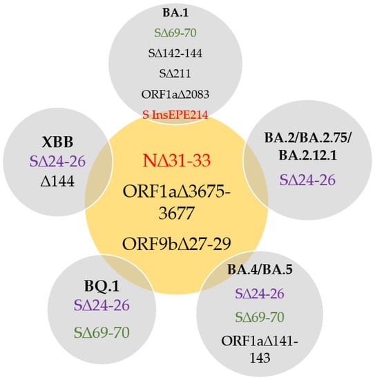 - Bloemen, M.; Rector, A.; Swinnen, J.; Van Ranst, M.; Maes, P.; Vanmechelen, B.; Wollants, E. Fast detection of SARS-CoV-2 variants including Omicron using one-step RT-PCR and Sanger sequencing. J. Virol. Methods 2022, 304, 114512. [Google Scholar] [CrossRef]
