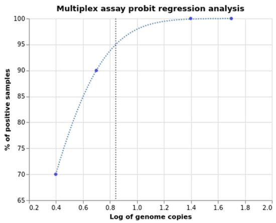 | LOD (C95) = 0.84 log | LOD (C95) = 7 copies per reaction | ||