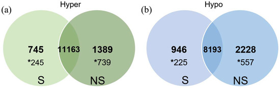 2.2.2. Targeted Analysis of Cow Oocyte DNA Methylation by Segmenting the Genome in Hypermethylated and Hypomethylated Domains for two Treatments (S versus NS animals)