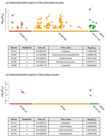 2.1. Global Methylation Profile of Oocytes from Ovarian-Stimulated versus Non-Stimulated Cows