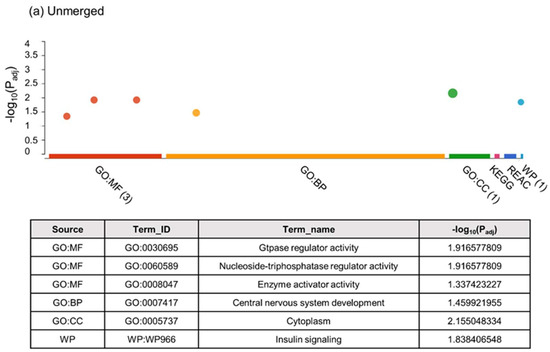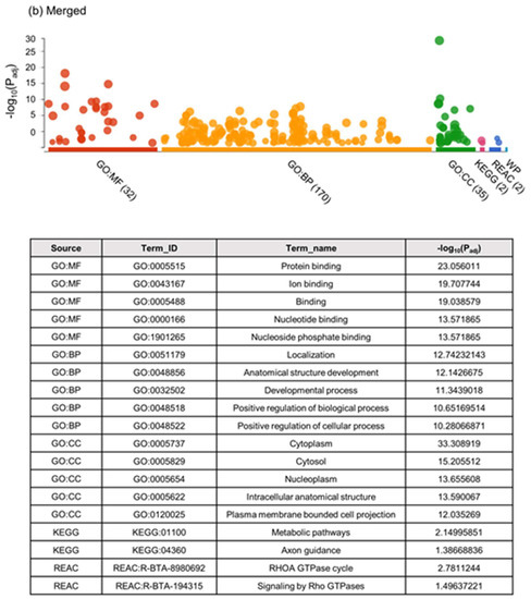 - Raudvere, U.; Kolberg, L.; Kuzmin, I.; Arak, T.; Adler, P.; Peterson, H.; Vilo, J. G:Profiler: A web server for functional enrichment analysis and conversions of gene lists (2019 update). Nucleic Acids Res. 2019, 47, W191–W198. [Google Scholar] [CrossRef] [PubMed]