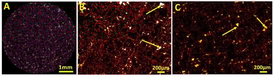 (A–C) The reconstructed cross-section of P(3HO) patch, obtained through the µ-CT method. Yellow arrows indicate porogen grains present in the prepared material.