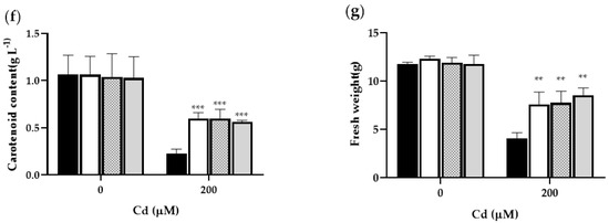 After being treated with 0 and 200 μM Cd2+ for seven days, the samples were washed with distilled water for a short time and then dried separately at 60 °C. The content of Cd in dried specimens was determined by atomic absorption spectrometry [36].