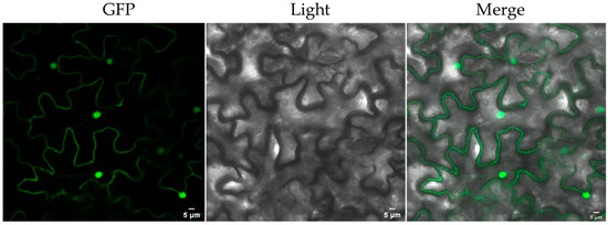 The PCL was fused with the enhanced green fluorescent protein (EGFP) gene and controlled by the CaMV 35S promoter (Supplementary Figure S2a). The transgenic tobacco overexpression of 35S::PCL-EGFP was cultured (Supplementary Figure S2b), and the protein localization was observed under laser confocal microscopy. Fluorescence showed that PCL localized both in the nucleus and the cytoplasm (Figure 8).