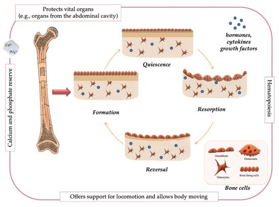 - Rowe, P.; Koller, A.; Sharma, S. Physiology, Bone Remodeling; StatPearls Publishing: Treasure Island, FL, USA, 2022. Available online: https://www.ncbi.nlm.nih.gov/books/NBK499863/ (accessed on 20 October 2022).