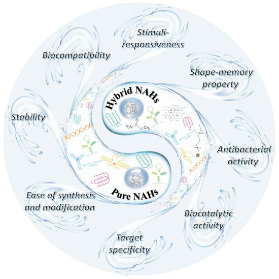 - Zhang, Y.; Zhu, L.; Tian, J.; Zhu, L.; Ma, X.; He, X.; Huang, K.; Ren, F.; Xu, W. Smart and Functionalized Development of Nucleic Acid-Based Hydrogels: Assembly Strategies, Recent Advances, and Challenges. Adv. Sci. 2021, 8, 2100216. [Google Scholar] [CrossRef]