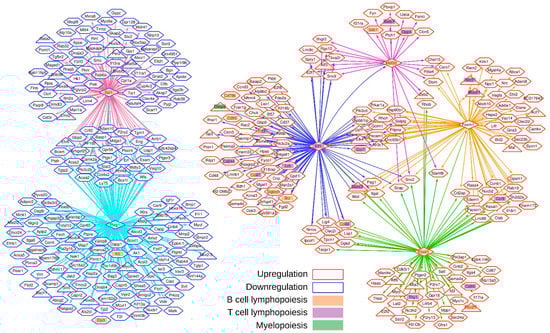 2.5. Prediction of a Gene Regulatory Network Related to Lymphoid Differentiation