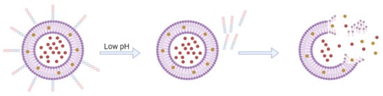 - Simões, S. On the formulation of pH-sensitive liposomes with long circulation times. Adv. Drug Deliv. Rev. 2004, 56, 947–965. [Google Scholar] [CrossRef]