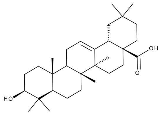 The introduction of drugs derived from synthetic organic chemistry in the XXth century has marked the phenomenal advance of therapy in all medical fields due to their intense biologic effects and economic feasibility for large-scale preparation. However, a major disadvantage of synthetic drugs lies in their adverse effects such as the high, intolerable organ toxicity exhibited by anti-neoplastic drugs. Currently, this issue is mitigated by the development of modern and sophisticated therapies such as gene therapy, immunotherapy, or targeted therapy which show promising clinical outcomes but at high costs. A more approachable path consists of the replacement of synthetic drugs with natural compounds which exhibit similar pharmacological activities and can be chemically modified in order to obtain a suitable bioavailability []. Amongst all-natural bioactive compounds, triterpenes represent one of the most promising categories, not only for their large plethora of compounds but also for their wide range of pharmacological activities, such as anti-tumor, antioxidant, anti-viral, anti-microbial, cardioprotective, antidiabetic, neuroprotective, etc., []. Even though triterpenes exhibit such a significant pharmacological potential, their low solubility, hence bioavailability, leads to the need of finding proper formulations to enhance their biomedical activities [].