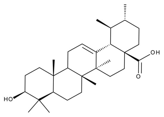 - Mlala, S.; Oyedeji, A.O.; Gondwe, M.; Oyedeji, O.O. Ursolic Acid and Its Derivatives as Bioactive Agents. Molecules 2019, 24, 2751. [Google Scholar] [CrossRef]