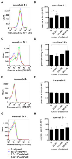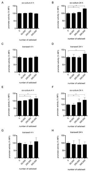 We determined in all cases the promoter activity after 4 and 24 h of culture by flow cytometry.