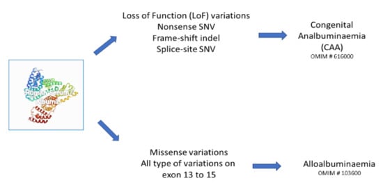 Chicago/Turabian StyleCaridi, Gianluca, Francesca Lugani, Andrea Angeletti, Monica Campagnoli, Monica Galliano, and Lorenzo Minchiotti. 2022. "Variations in the Human Serum Albumin Gene: Molecular and Functional Aspects" International Journal of Molecular Sciences 23, no. 3: 1159. https://doi.org/10.3390/ijms23031159