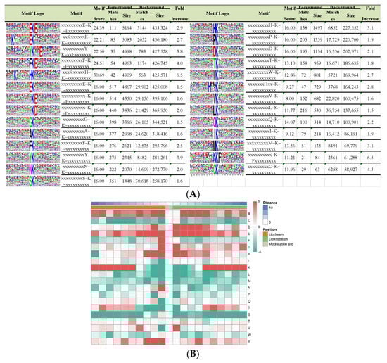 - Cheng, A.; Grant, C.E.; Noble, W.S.; Bailey, T.L. MoMo: Discovery of statistically significant post-translational modification motifs. Bioinformatics 2018, 35, 2774–2782. [Google Scholar] [CrossRef]