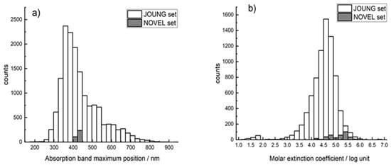 - Joung, J.F.; Han, M.; Hwang, J.; Jeong, M.; Choi, D.H.; Park, S. Deep Learning Optical Spectroscopy Based on Experimental Database: Potential Applications to Molecular Design. JACS Au 2021, 1, 427–438. [Google Scholar] [CrossRef]